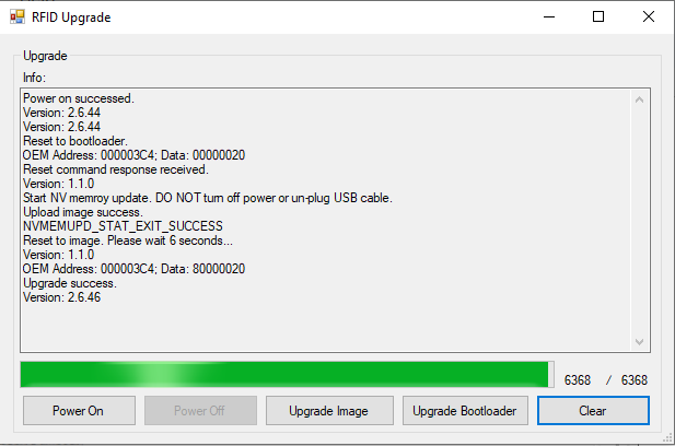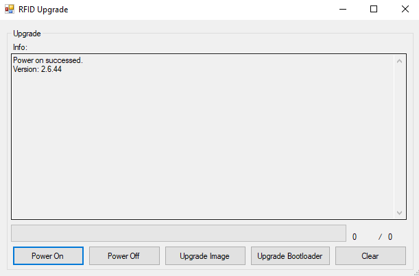 1. To upgrade RFID firmware, Click on the “Upgrade” button in the RFID Firmware Upgrade box. A separate window pops up.