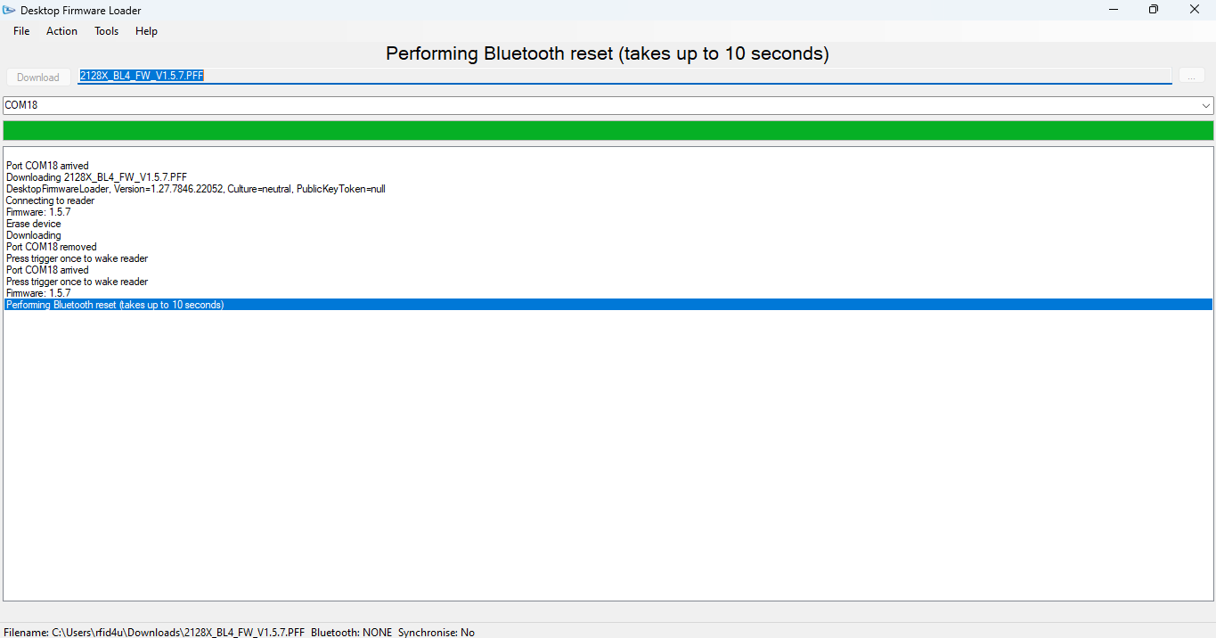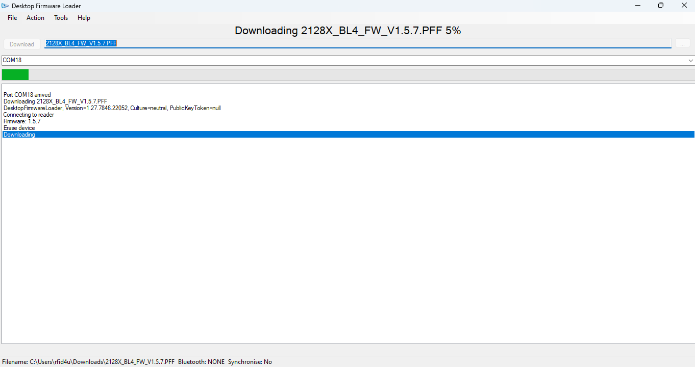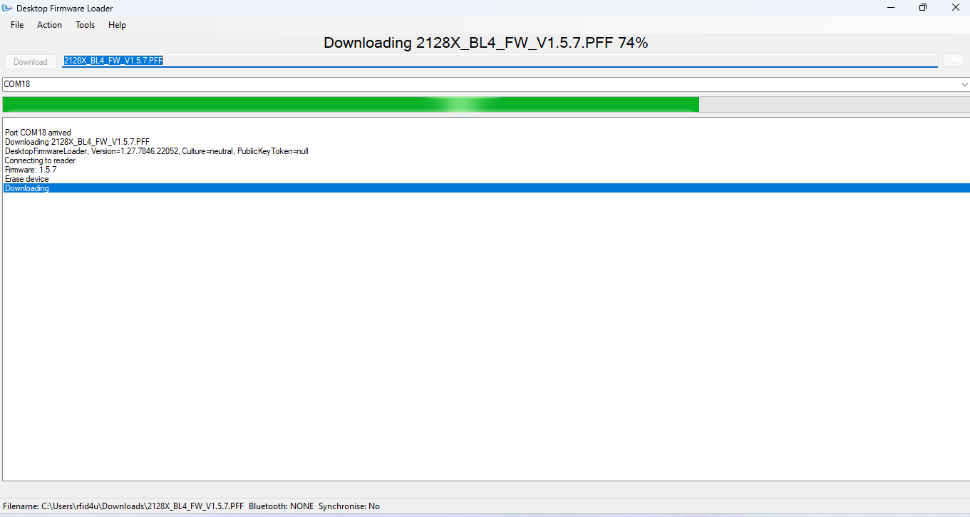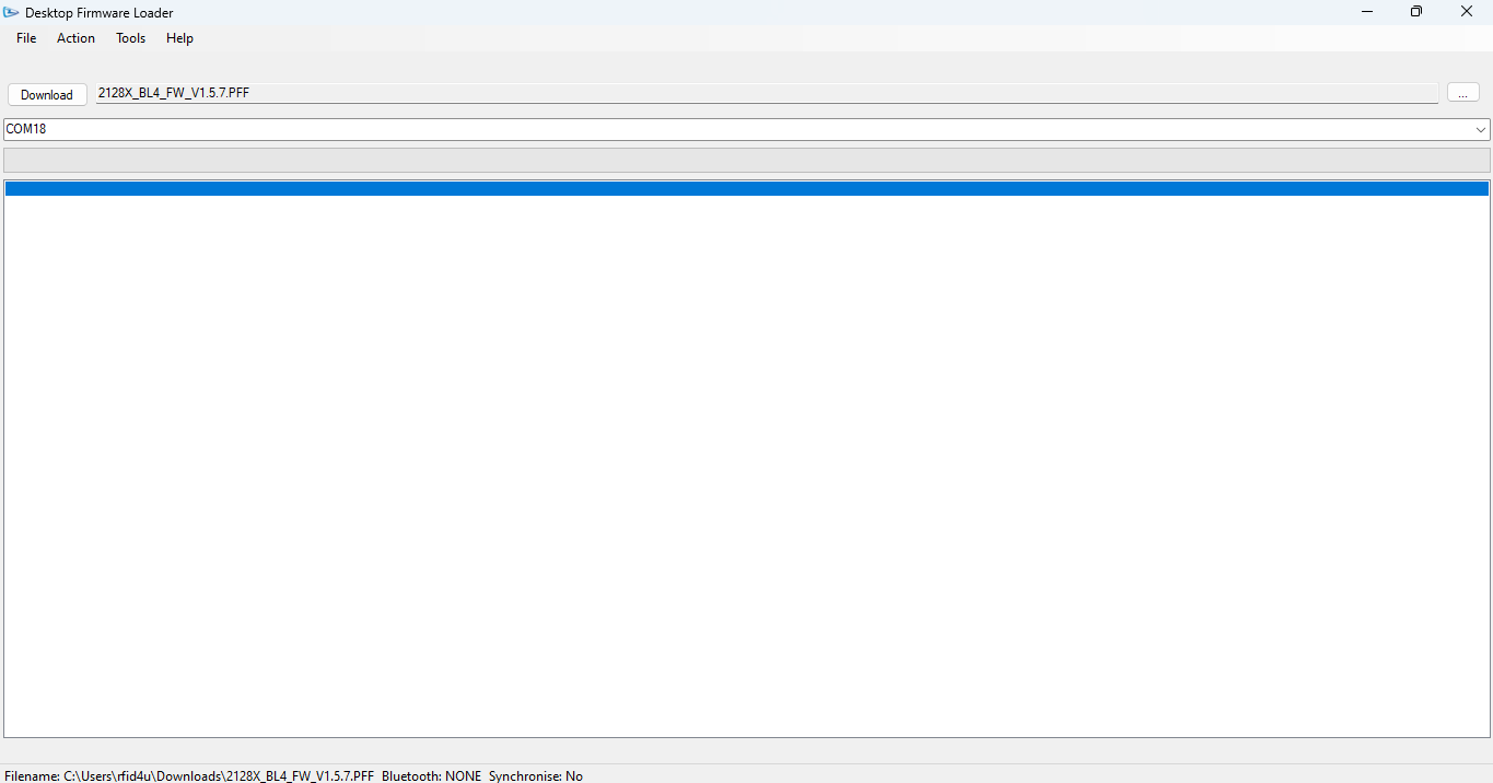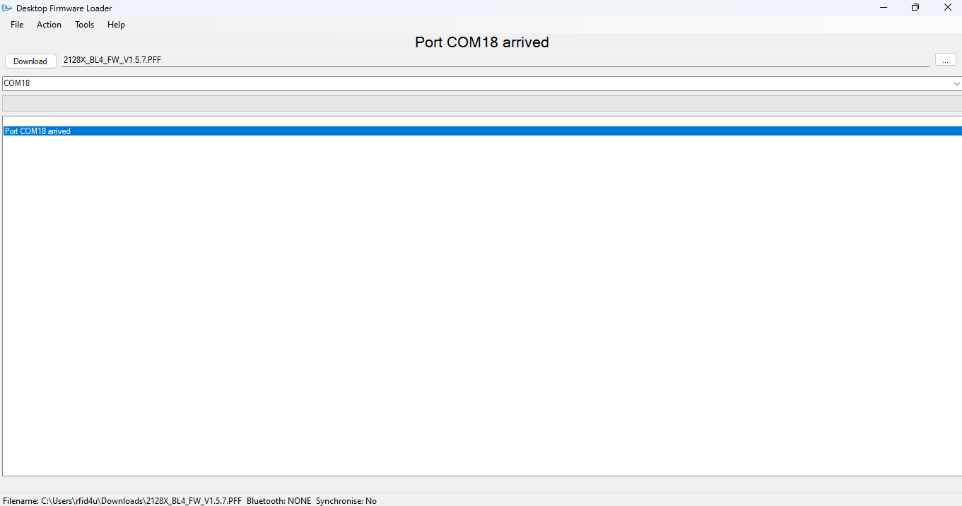 12.Connect the reader to the computer using the supplied USB cable. Once the driver is installed the application will see the COM port arrive and select it automatically. You can then click “Download” to start the download process. As shown in Fig 0.9.