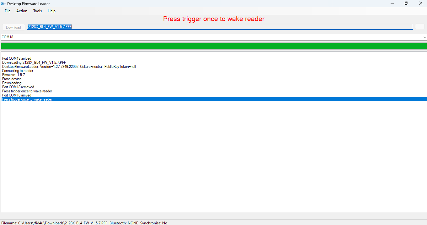 14. Press the trigger button on the reader to wake the unit and complete the download. As shown in Fig 1.2.