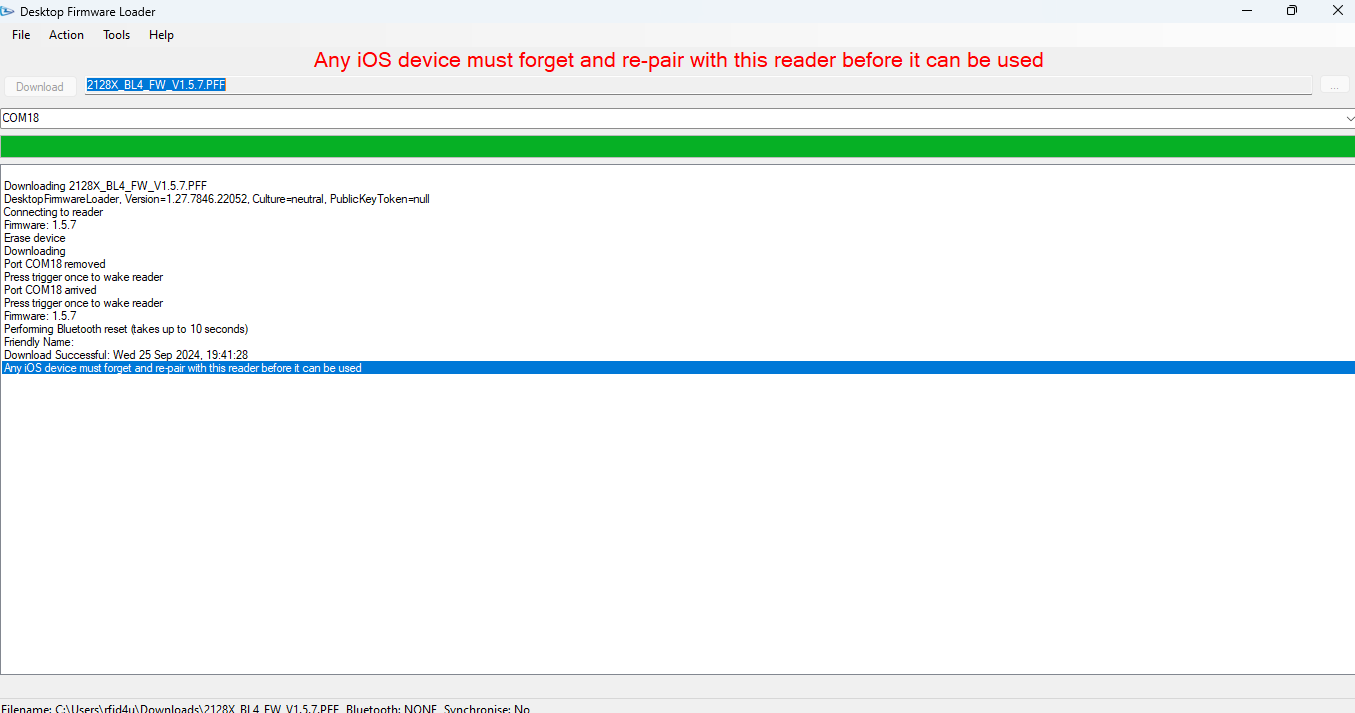 15.The download completes by (re)configuring the Bluetooth module as shown in Fig 1.3.