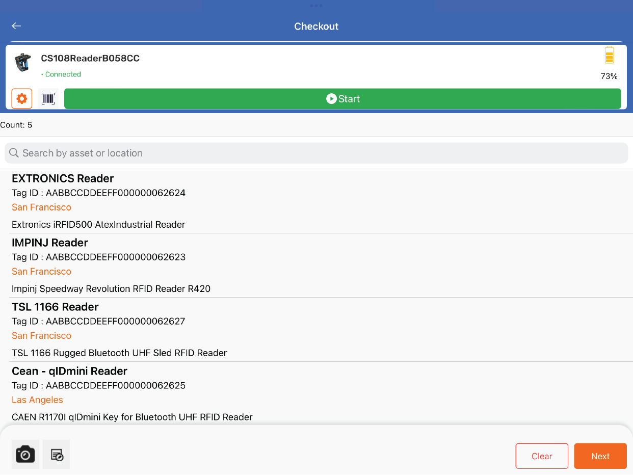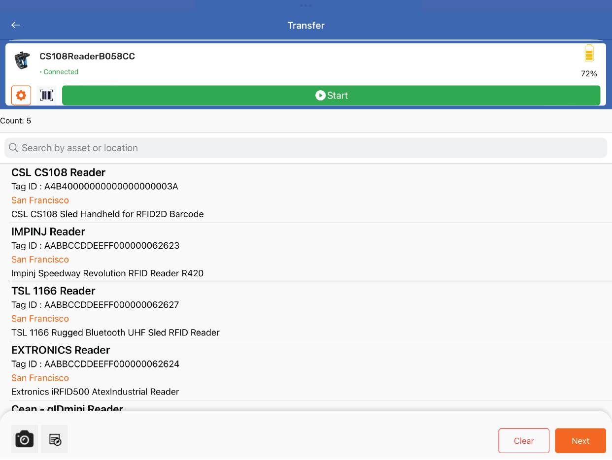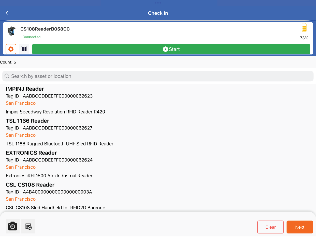 If you accidentally scan an asset that you didn’t mean to, you can Clear out the entire transaction or just swipe right to left on a single item and