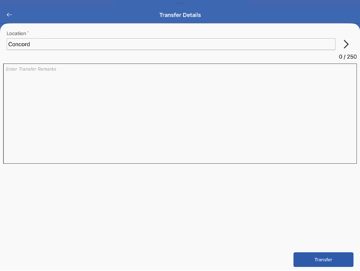 The transfer transaction allows you to transfer assets from one location to another. Scanning assets is just like checkout or check-in transactions. Once you go ahead and scan at least one asset, then click Next to continue. You’ll need to select the new location that the asset is being transferred and then you can optionally enter any notes. To finish up, click the Transfer button to close out the transaction.