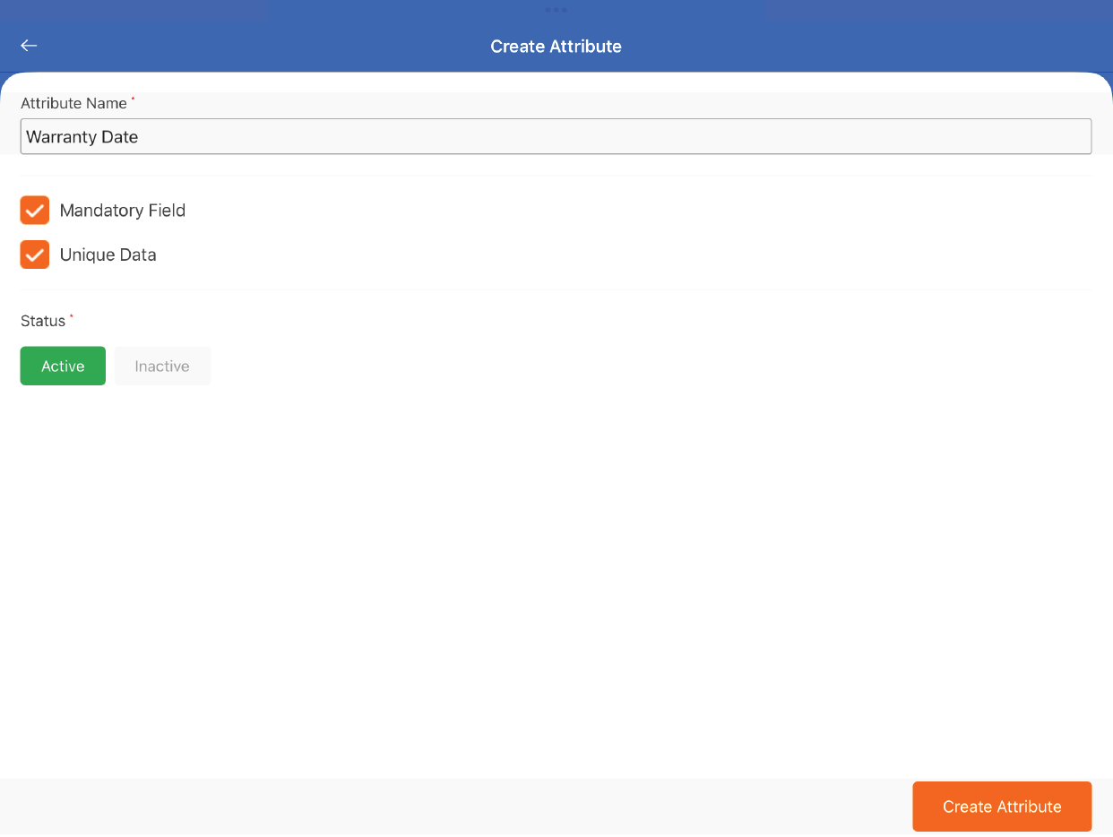 Attribute Name - Enter the attribute name. This attribute will be available when creating the asset, viewing the asset details and on reports.