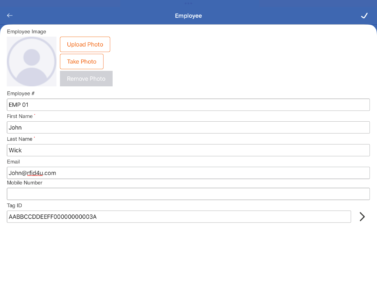 Other fields that can be entered are the Employee #, Email, Mobile Number, Tag ID as well as a photograph.