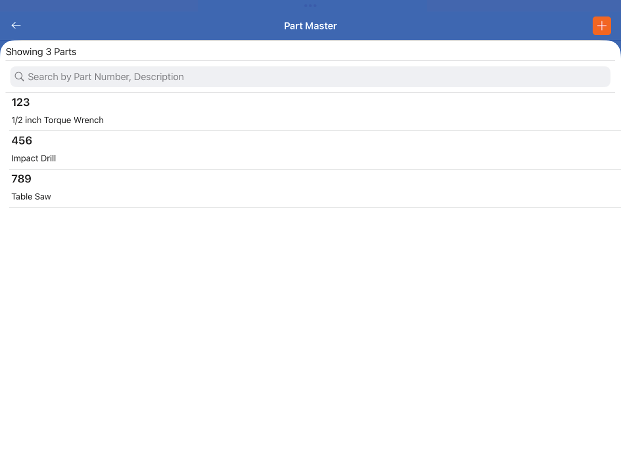 On the Part Master, you will be able to see the list of already created parts. To create a new part, click on the + icon on the top right-hand side of the screen.