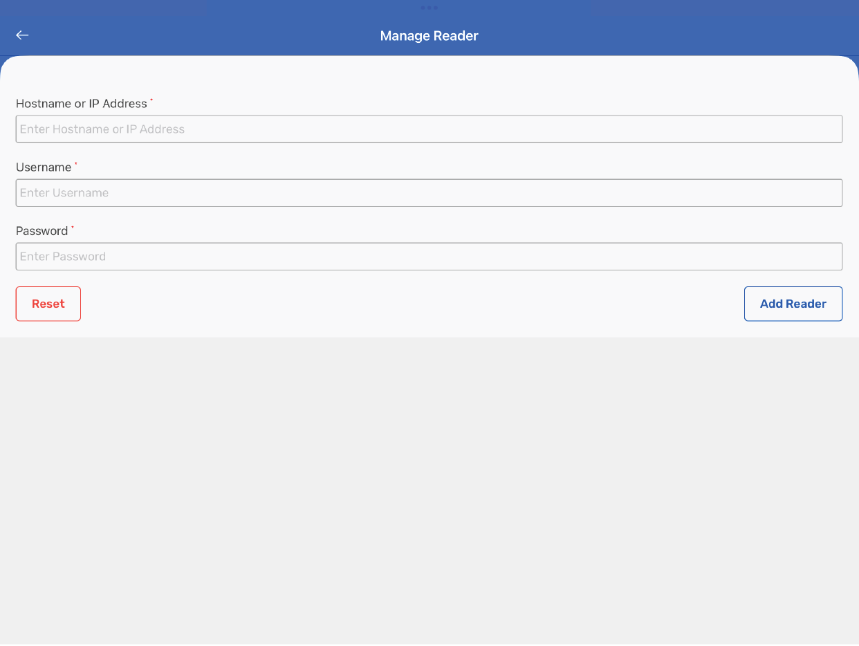 It opens the page for adding Impinj R700 readers. Enter hostname, username and password. After that you can click on add reader. This will verify the connectivity with the reader and make initial setup for the reader to communicate with ATL.