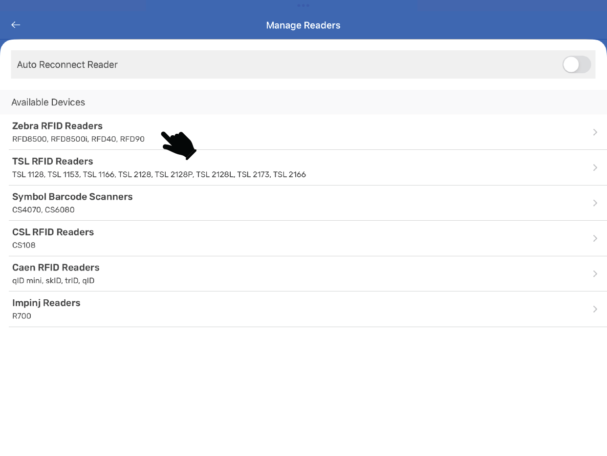 This section contains setup information for using the Zebra RFD8500 sledge RFID readers with TagMatiks AT Lite.