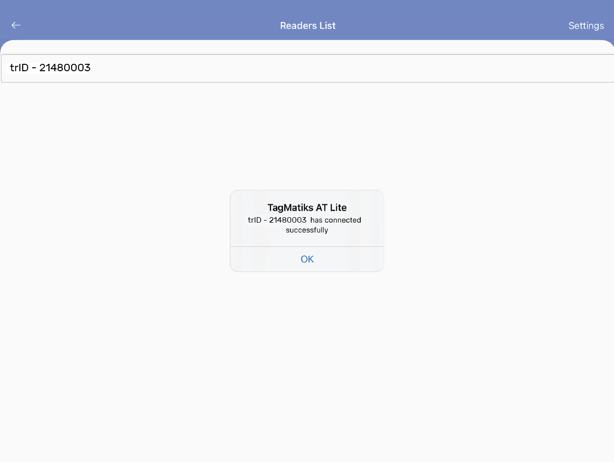 7. TagMatiks AT Lite application will show the discoverable reader’s name & MAC Address; as shown below: