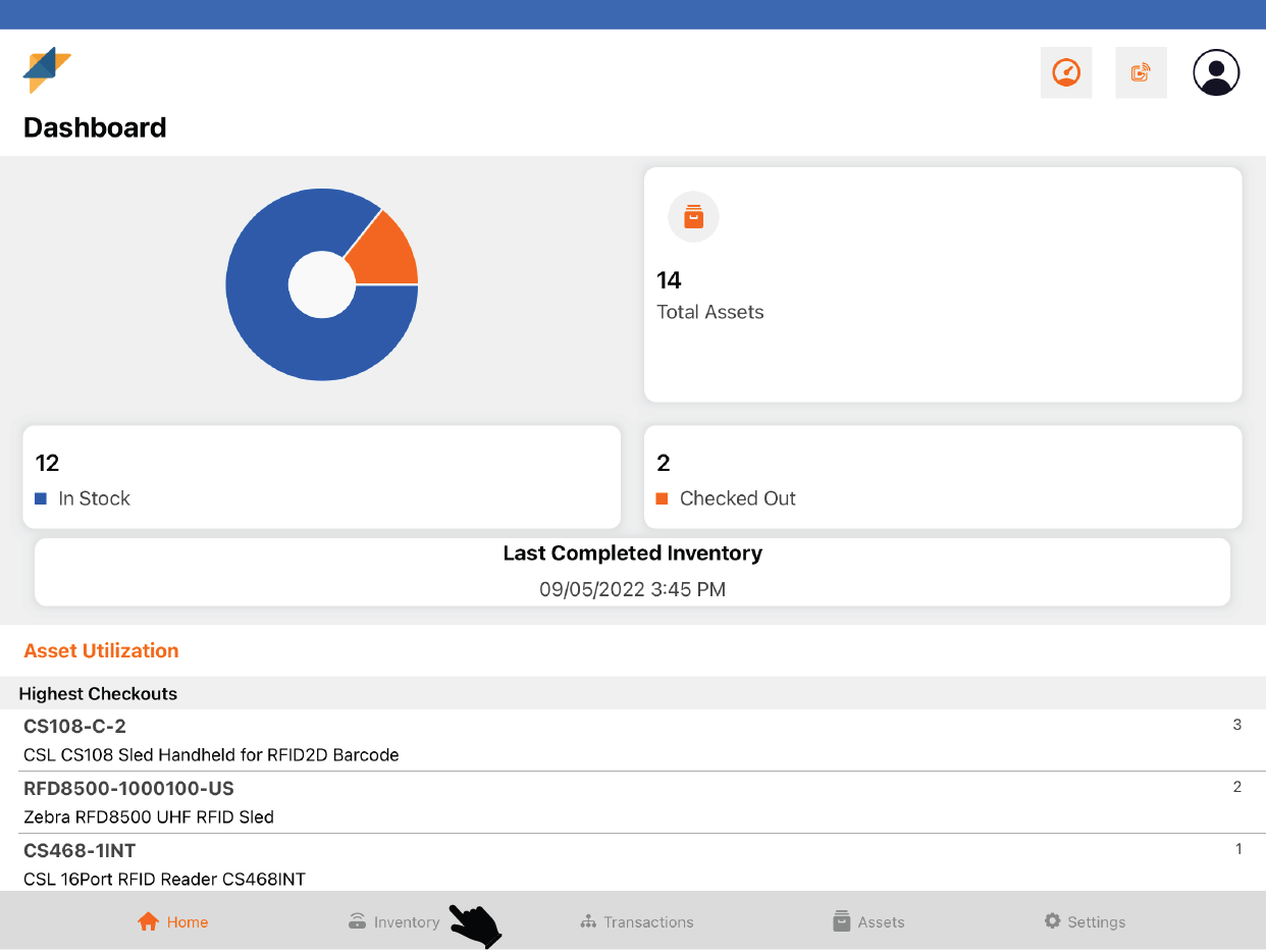 6. Press the “Inventory” button - on the bottom left-hand side of the application.