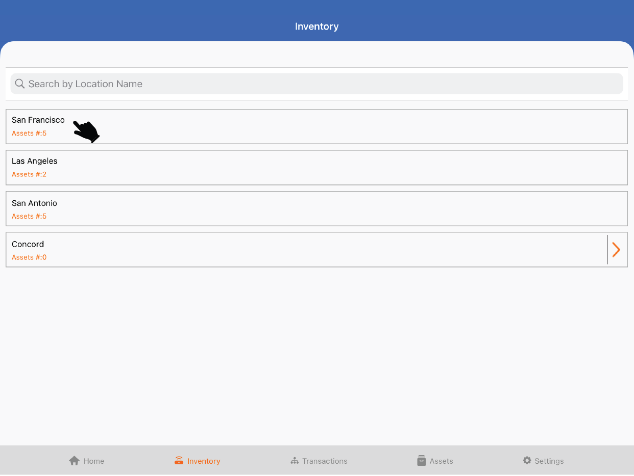 8. For taking the inventory, click on any location; for example “San Francisco” is selected.