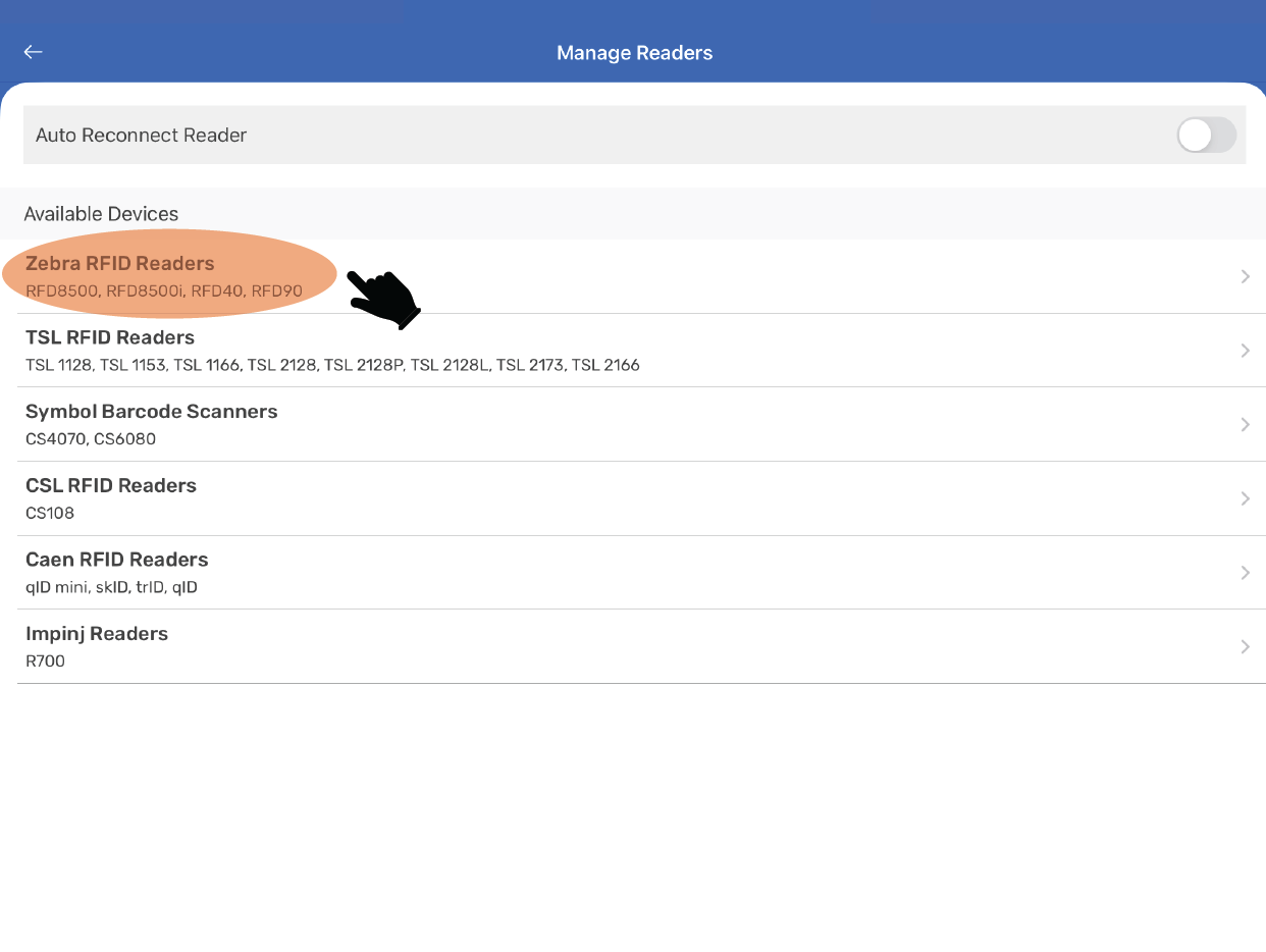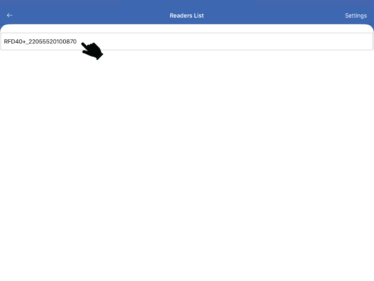 NOTE: Make sure the iOS device’s Bluetooth must be on and near to the RFD40 reader.
