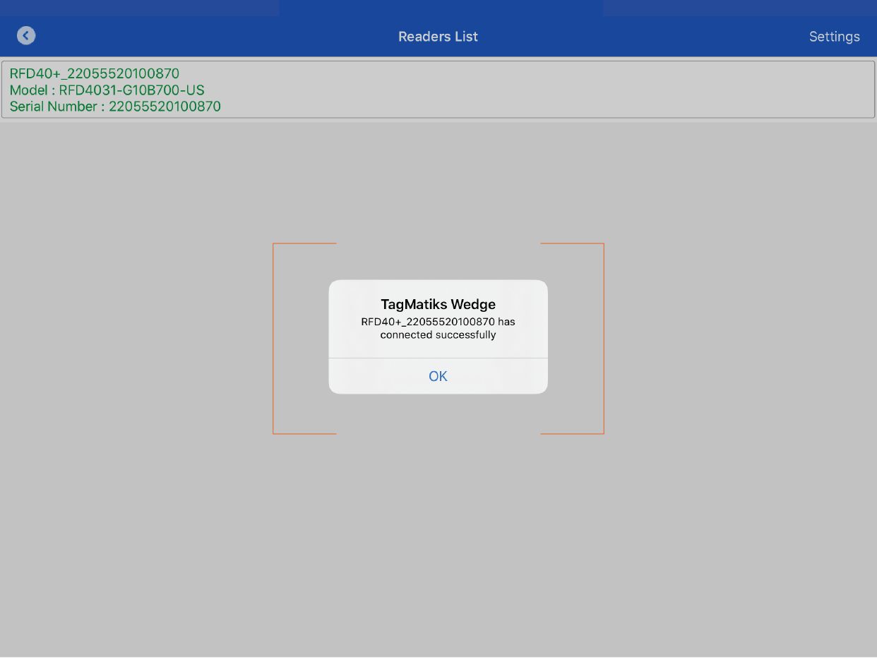 12. Once you press on the reader's name, then the application will start making a connection with the RFD40 device.